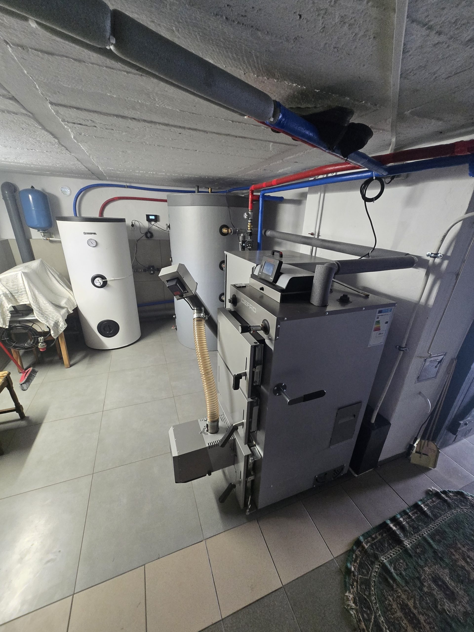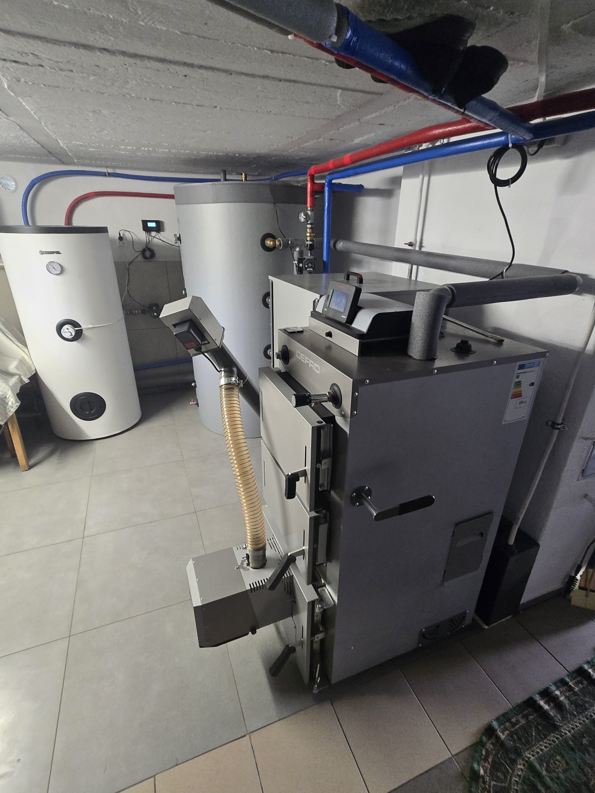 Kocioł zgazowujacy drewno o podwyższonym standardzie z możliwością palenia pelletem marki Defro wraz z buforem i osprzętem.